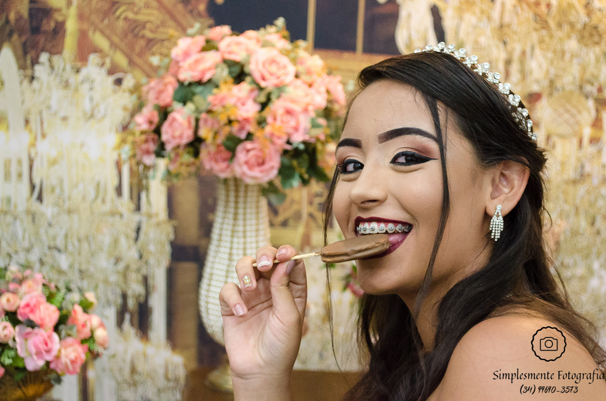 A festa de 15 anos foi uma ideia/presente da tia Carmen, que optou por fazer algo bem simples, mas onde não faltaria afeto e alegria na comemoração de data tão importante. E assim foi. Simples, não simplório, e muita alegria, emoção e diversão.